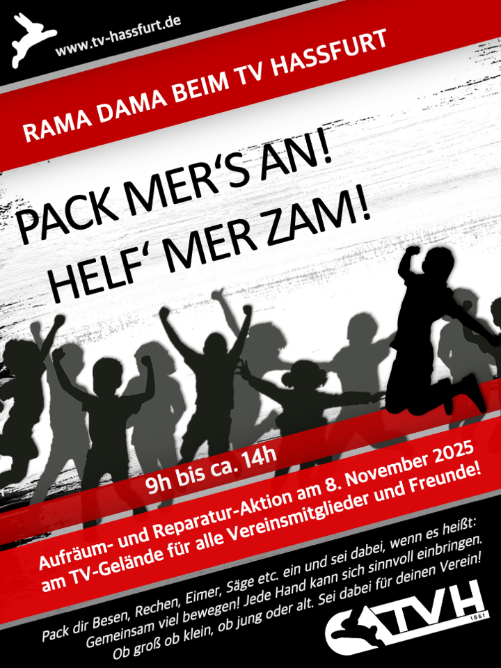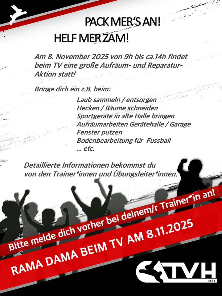 Am 8. November 2025 von 9h bis ca.14h findet beim TV eine große Aufräum- und Reparatur-Aktion statt!
